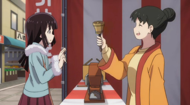買い物先で抽選券が溜まり、運だめしで抽選をしてみる美月。日和(仮称)の念力で何と1等賞の「温泉旅館宿泊ペアチケット」を獲得するのだった。