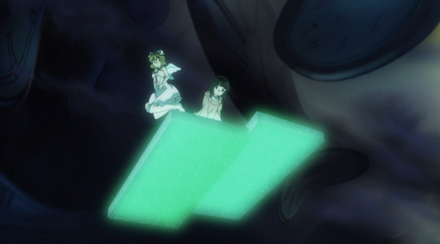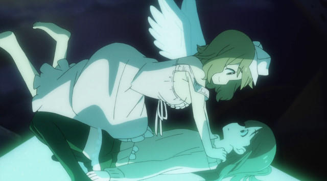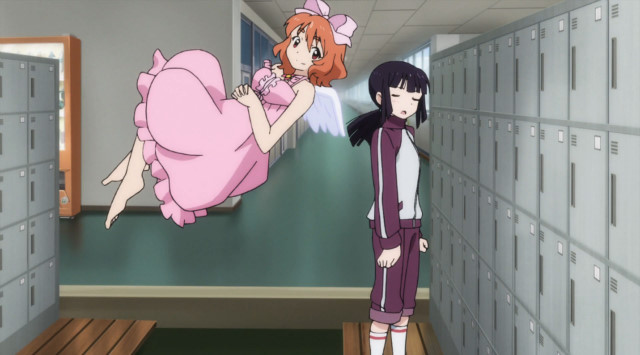 第1話でのトイレの一件の後、T.S.Tを何とか取り外そうとする美月を余所に、夕哉からもらったプリン・アラモードを後生大事に食べる日和。そんな日和に「幽霊ならさっさと成仏できないのか?」と言う美月に対し、日和は「色々な条件があってその条件を満たす為に美月の身体を乗っ取る必要があった」と返答。結局、美月の抵抗で条件を満たせないと判断した日和は美月に協力を得る為に天界の門へと美月を連れていくのであった。