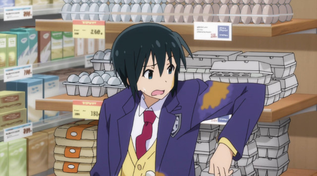 保健室の一件で美月が早退、一方の夕哉は夕食の材料調達を行っていたが、親とはぐれた子供にぶつかりそうになった拍子で生卵の陳列棚にぶつかり、服に潰れた生卵を引っ被ってしまう。