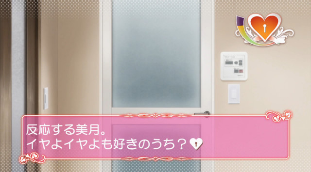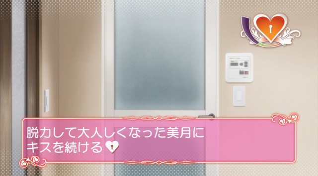 すぐさま夕哉が物音に気付いてドアを開けようとするも、ここぞとばかりに日和が入れ替わり、夕哉がドアを開けた瞬間、夕哉の腕を掴んでバスルームに引きずり込んでしまい、夕哉と美月は2人揃ってバスルームに閉じ込められてしまうのだった。