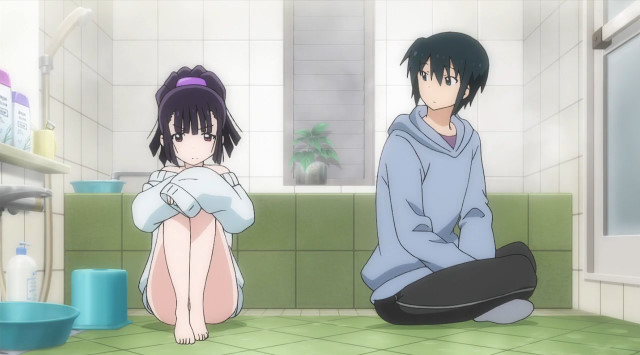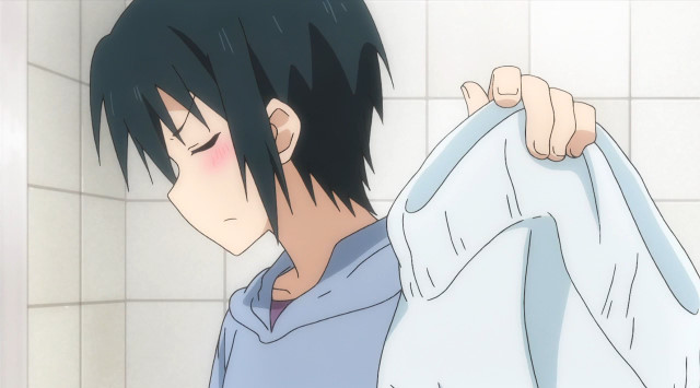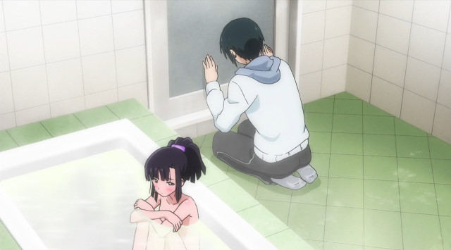 第2話で日和の勝手な行動が原因でバスルームに閉じ込められてしまった夕哉と美月。裸(とT.S.Tを着けている事がバレない)の為に湯船に浸かっている美月に、のぼせないようにと自分のセーターを美月に渡す夕哉だった。