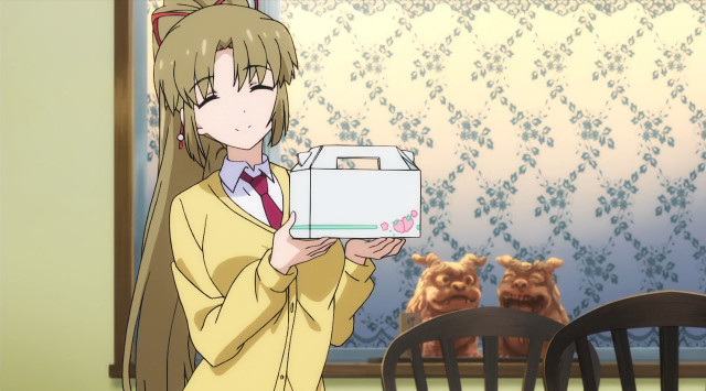 片手に弁当を持ち、片手を夕哉に掴まれ、強風でめくり上がりそうなスカートを抑える事が出来ず混乱する美月の所に雪那が登場。雪那のお姉さんの一面を見た美月だが、そこに強い風が吹き、美月のスカートがめくれ、夕哉にお尻を見せることとなった。T.S.Tをまともに見てしまった夕哉は狼狽した拍子に足を滑らせ、頭を柱にぶつけて気絶してしまう。
