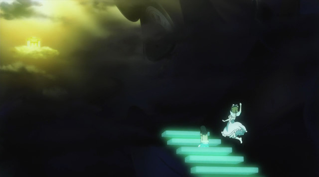 しばらくして天界の門、日和がT.S.Tのゲージの液体を階段に還元する中、自身の胸を気にする美月。一方の夕哉は日和の質問をなぞなぞと勘違いしてしまう。