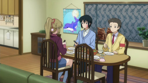 その後、美月を除いた3人は夕飯を食すのだが夕哉の頬は美月に叩かれたせいで真っ赤になっていた。一方の美月は階段が更に積まれて喜ぶ日和(仮称)を尻目に、裸エプロン姿を見られた上に全裸の夕哉を見た事でT.S.Tのゲージが溜まった事に納得がいかないでいた。