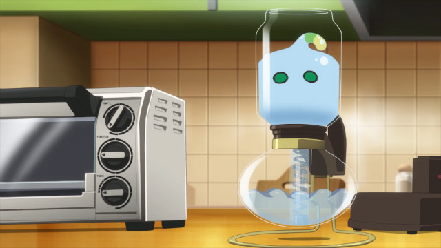髪飾りとリボンをそれぞれ見失って探し回るミーアとセントレア、ふと目をやるとキッチンのコーヒーサイフォンで自分をろ過しているスーがいて…