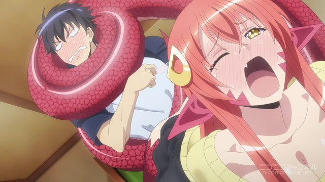 はてさて、原作でも屈指の神回が1話に集められた回ですが、とにかくエロかったww描写的にも声的にも!あと自称映像監督の声がまさかの藤原啓治さんという豪華さ!第一声から藤原さんだと解りましたよ(自分の脳内再生では緒方賢一さんでしたが)。あと、原作との違いで、加瀬木に共犯のスタッフが2人いたんですが、話の都合を合わせる為かアニメでは加瀬木1人になってましたね。あと、原作での脱皮回の最後のコマで、ミーアと公人がそれぞれ料理と蛇の勉強をしているコマで締められたが、アニメではAパート終了のアイキャッチにされてましたね。それと原作第3巻の表紙裏に描かれていたミーア、セントレア、パピ、スーの主食及び好物についての内容がBパート前のアイキャッチにされてましたね。一方でちょっと気になったのが、看病回を飛ばしたせいでスーがかなり喋っているなという印象がありました。あの回でスーは倒置的な喋りから流暢に会話するようになったんだがなぁ…まぁ「ほぼ日動画」でも既に流暢に喋っているから気にしない方がいいのかも(汗)