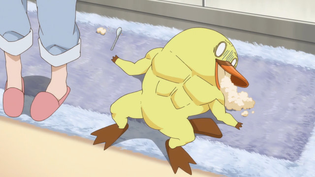 観念してブロッコリーを食べようとするモモカだが、既にブロッコリーが無くなっていた。するとカモが「今回だけだぞ」という眼でモモカとかず江に語り、モモカに一役買ったのだった。その後、2人と1匹は仲良く風呂に入るのだが、かず江がカモ以上に謎だった為、ぶっちゃけカモの事がどうでもよくなり、風呂を満喫するモモカであった。