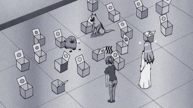佐倉がうらら、摩耶、かよの存在を知らないまま施錠してしまい、脱出不能となった屋内プール。暖房も止められてしまい、夜の為に眠気に襲われ始める。プールに上がれば低体温症、プールの中にいると眠気で溺死という状況を、3人は「前門の虎、後門の狼」と例えている。