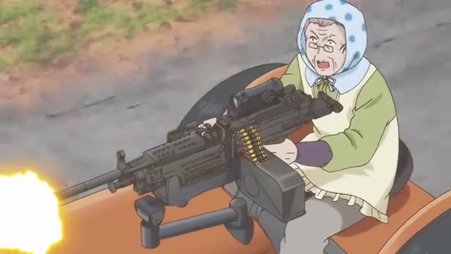 カモの合図でレースが始まり、サバゲ部がスタートダッシュに成功。しかし、これを見越したかのごとく老人会が後方から飽和射撃を敢行、美煌はバイクのブレーキスモークでかく乱しながら老人会の後方を捉えて銃撃するも、老人会リーダーの妨害に遭う。一方、トラクター・軽トラ・ジャイロコプターの猛攻で摩耶が早々と脱落、モモカがトラクターに標的を絞り牽制してうららとかよがこれを撃破しようとするも、トラクターの老人のヨボヨボ姿を見て動揺、反対方向からの軽トラとジャイロコプターの反撃でうららとかよまでも脱落し、サバゲ部は半周前に全滅のピンチを迎えた。しかし、ここでモモカがトラクターの老人の撃破に成功。続いてモモカとレモンの乗るトラックはトンネルに入って軽トラとジャイロコプターを分断、モモカがトンネル内でトラックから荷台を外して軽トラを足止めし、停車したところで軽トラの2人を撃破する。トンネルを出た直後、正面からジャイロコプターの銃撃を受けるも、モモカのお願いを受けたレモンがトラックで捨て身の体当たりを敢行しジャイロコプターを巻き込む形で自爆。モモカは寸での所で脱出に成功する。