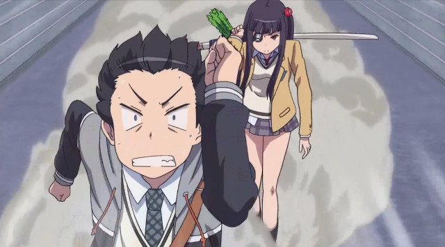 学校の終わり、校門で待ち伏せする逸花を目撃して、猛ダッシュで逃走しようとする明日汰とそれを徒歩で追う逸花。